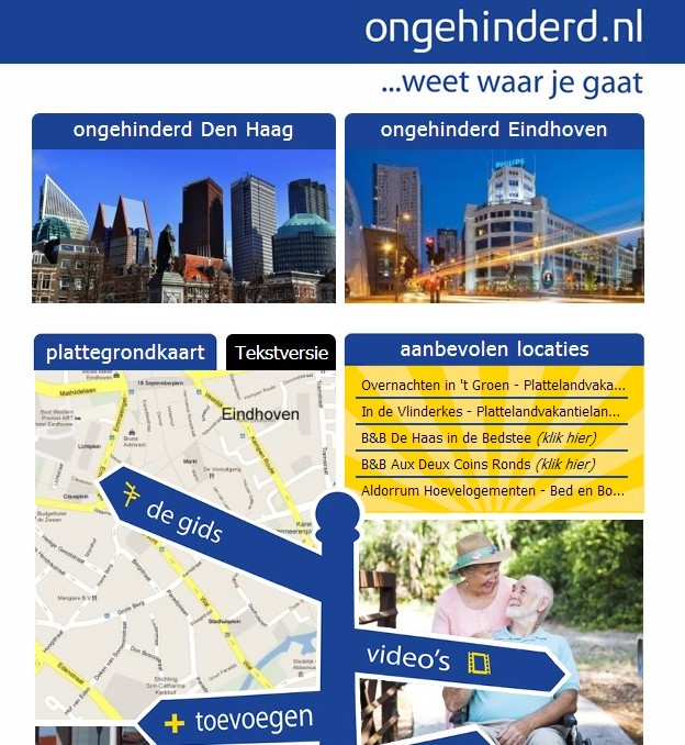 De website, ONGEHINDERD.NL, is tegelijk een voorbeeld van co-creatie van gebruikers. Iedereen kan er zijn of haar accommodaties aan toevoegen.